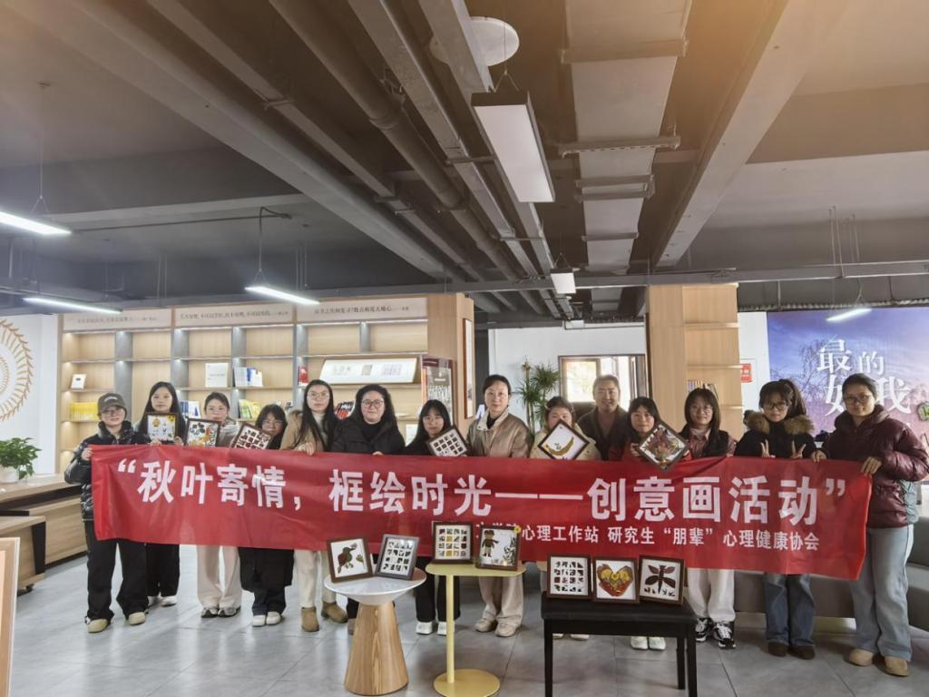 为丰富学生精神文化生活,帮助学生缓解学业压力,2025年12月8日至10日,成人影院 心理工作站联合研究生朋辈心理健康协会,在诚己学生社区开展“秋叶寄情·框绘时光”创意画活动,吸引了成人影院 、医药卫生管理学院、药学院的研究生及本科生参与其中。活动中,学生以深秋时节的落叶为自然笔触,将叶片的形态肌理与斑…