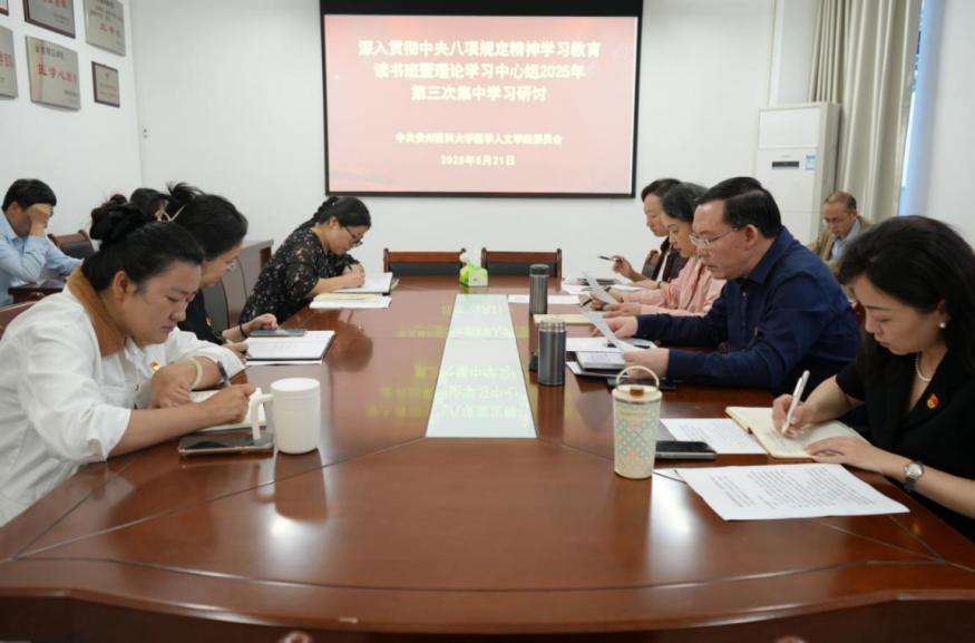 5月21日,学院党委在善思楼2-40会议室开展了深入贯彻中央八项规定精神学习教育读书班暨理论学习中心组2025年第三次集中学习研讨,学院党委理论学习中心组成员出席,学院副科级以上干部、各党支部书记及纪检委员、科室、教研室(中心)负责人列席。学院党委委员、院长冯广卫主持会议。会上,集中学习了《习近平关于加强党…