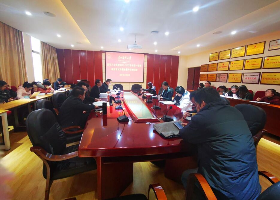 12月20日,学院召开2021-2022学年第一学期期末考试专题暨考务培训会。院长杜凯、正处级组织员韩贞习、党委副书记张健、党委委员冯斌出席会议。会议由副院长严万森主持。院长杜凯在讲话中强调,各教研室(中心)应高度重视,切实加强考试管理,强化教师的责任意识;要严肃考试纪律,端正考风和学风,圆满完成期末考试监考…