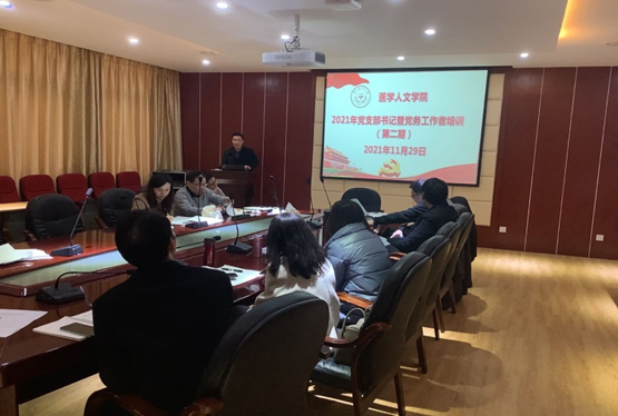 11月29日,学院党委在善思楼408会议室开展2021年党支部书记暨党务工作者第二期专题培训,学院党委书记江宣成主持,正处级组织员韩贞习主讲,学院党委委员、各党支部书记及党务工作者参加。韩贞习以“坚持‘三会一课’制度,推进党支部规范化建设”为主题切入,强调“三会一课”制度的重要性。他从“三会一课”的作用、“…