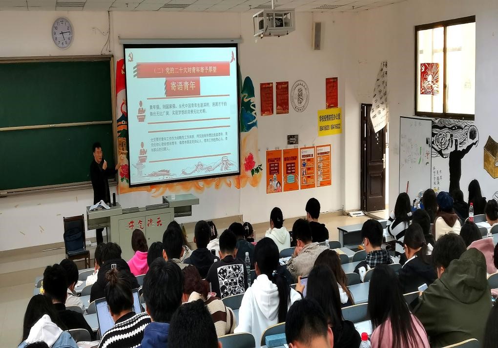 法学2019级在南校区第七教学楼明理楼7104教室开展党的二十大精神宣讲活动,宣讲活动邀请成人影院