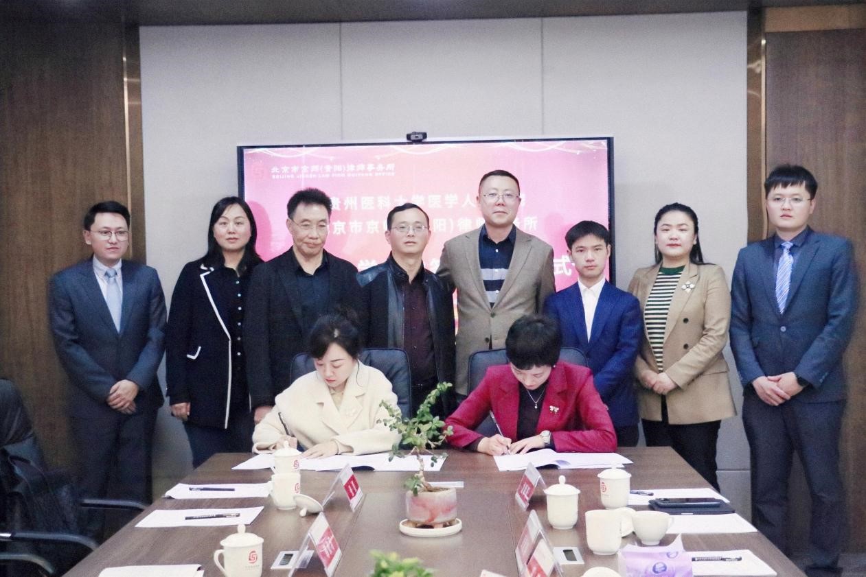 党委书记江宣成、正处级组织员韩贞习、党委副书记张贤、副院长彭丹、教学科研管理科科长冯斌、学生科科长车阳艳、医事法学教研室负责人龚精诚等,北京市京师(贵阳)律师事务所主任李霞、律师郭啸、律师周丹麦、律师刘淼、律师龙章跃、行政主管王昌浩、行政专员罗颖杰参加了签约授牌仪式。仪式由北京市京师(贵阳)律师事务所执行主任吴爱国主持。