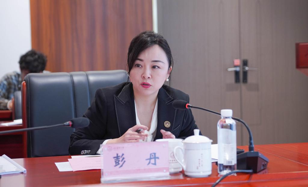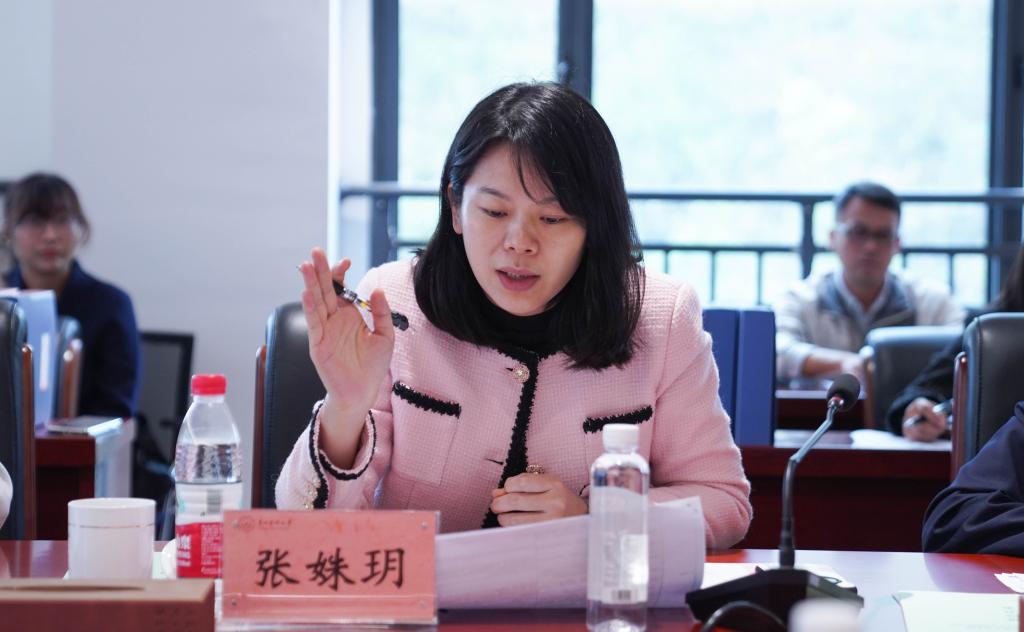 副院长彭丹围绕学位授权点的目标方向、师资队伍、人才培养、科学研究、学术交流、质量保障、服务贡献等方面向专家组进行了详细汇报。