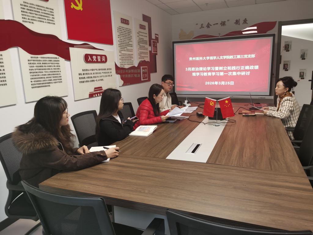 2026年3月25日,教工第三党支部在云漫湖校区弘远楼3-8会议室开展树立和践行正确政绩观学习教育交流研讨,党支部书记彭丹主持会议,党支部全体党员参加。