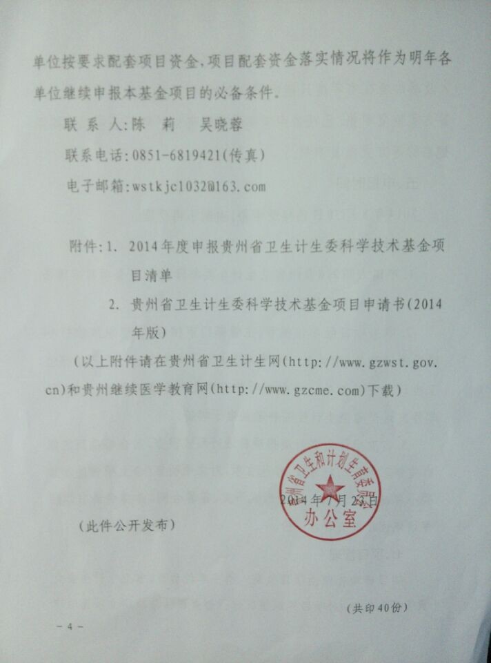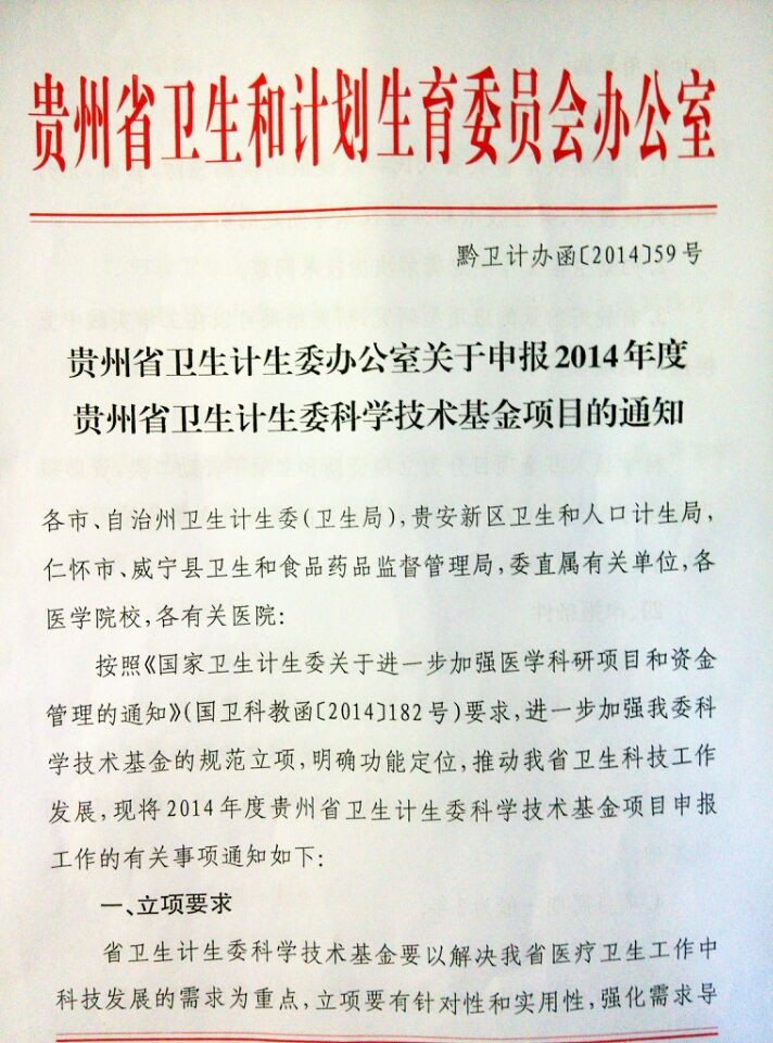 转发“贵州省卫计委办公室关于申报2014年度贵州省卫生计生委科学技术基金项目”