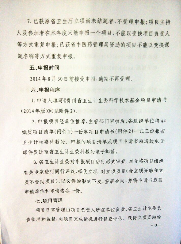 通知:贵州省卫计委办公室关于申报2014年度贵州省卫生计生委科学技术基金项目