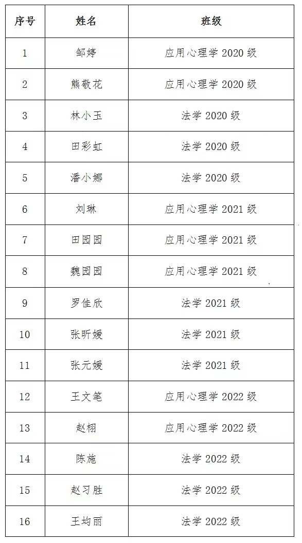 实际情况,严格按程序推荐2023年度本科生国家励志奖学金人选,拟推荐名单如下: