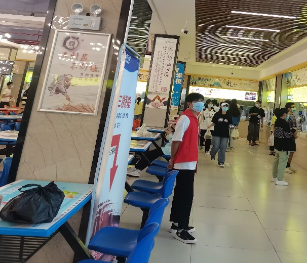 阻击疫情刻不容缓,人文学子纷纷响应号召,主动投身于疫情防控志愿服务中,勇敢地在不同岗位上贡献自己的青春力量。2020级应用心理学专业熊敬花、2020级法学专业袁丹丹、2021级应用心理学专业晏燚、2021级法学专业方雄、黄优、王凯燕等等同学都奔赴在一食堂志愿者岗位上,分别进行检查同学们的健康码、提醒禁止堂食、维护秩序等防控工作,2022级法学专业层长助理田宇配合学校的通知进行不定时的寝室核酸检查,靓丽的青春身影因承担更加夺目,以实际行动践行着与时代同行的青春呼声。