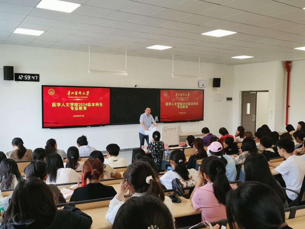 于9月19日在云漫湖校区举行了2024级新生专业教育活动。学院党委书记江宣成、院长冯广卫、正处级组织员刘雪梅、党委副书记兼纪委书记张贤、副院长彭丹、法学和应用心理学教师代表、教学科研管理科、学生科、学院团委有关人员及2024级全体本科生参加了会议活动。会议由张贤主持。