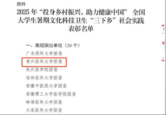 将以此为契机,持续深耕实践育人创新融合路径,引导广大青年学子主动扎根基层、躬身实践,在服务乡村振兴与健康中国战略的征程中勇毅前行,在为民服务的广阔舞台上锤炼过硬品格、增长实干才干,以实际行动彰显新时代贵医人的使命担当。