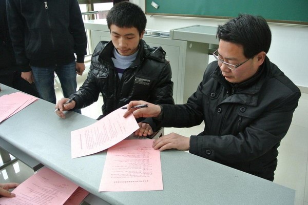 与每一位同学签署了双向承诺书。“卓越法律人才教改班”班主任张英民博士向同学们详细介绍了教改班的办学宗旨和培养计划。谢克颖同学代表教改班全体同学发言,表示要珍惜来之不易的学习机会,遵规守纪,刻苦学习,全面发展,成为对社会有用的人才。