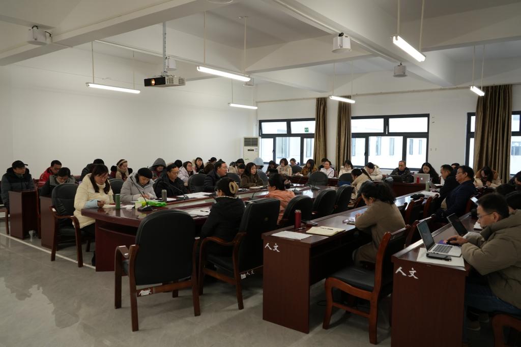 在善思楼234会议室召开教职工大会。会议由党委书记江宣成主持,全体教职工参加。