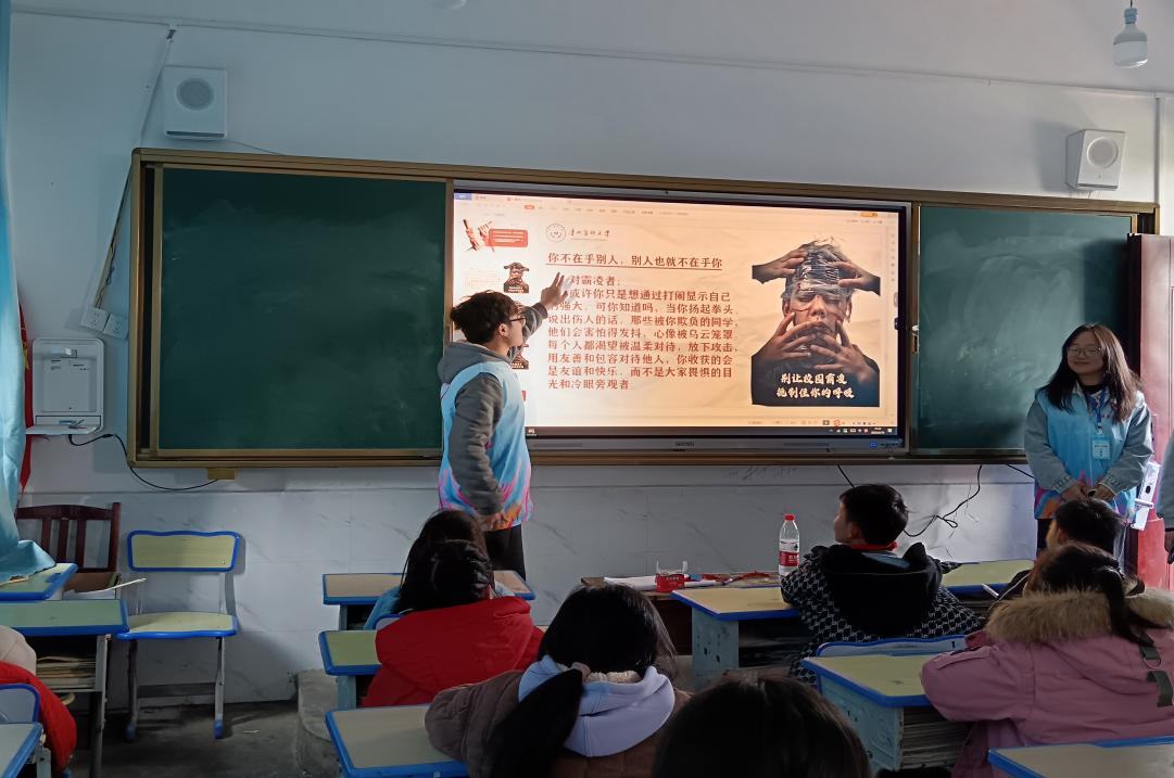 2025年3月19日,校团委综合科黄莉雯、学院学生科全体辅导员老师带领下,70余名青年志愿者走进马场镇中心小学四、五、六年级共计12各班集体开展入班宣讲活动,活动紧扣校园霸凌这一严肃主题,采用了宣讲与视频演绎相结合的形式,结合生活中的真实案例,深刻剖析霸凌行为给受害者身心带来的严重危害。现场气氛活跃,志愿者耐心解答疑问,不仅帮同学们认清霸凌危害,还传授了自我保护的方法。