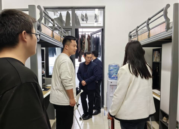 学院领导和老师们在学生宿舍区,就学生学习问题、生活环境、出行情况等涉及的安全隐患问题进行全面了解和排查,包括安全用电、防盗防骗、安全出行、健康卫生、饮食情况等与同学们进行了交流。