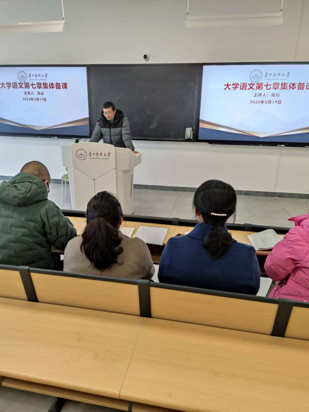2025年2月19日下午,文学文化教研室在R107教室举行新学期第一次集体备课,教研室全体教师参加。本次集体备课由马海主持,王露娇子、高山、谢关艳担任主备课人,教师们围绕新学期教育教学规划、课程思政融合、教育教学方法优化等核心议题展开研讨,旨在为新学期教育教学工作奠定坚实基础。