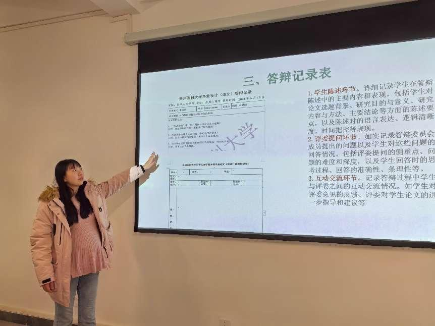 会上,令狐雪雪、罗娜、黄列玉三位教师分别就毕业论文、教学大纲和教案、试卷分析等内容进行了培训,参会人员就有关问题进行了交流讨论。