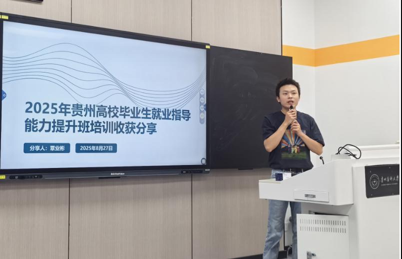 最后,教研室覃业彬老师分享了暑期参加“贵州省高校毕业生就业指导能力提升培训班”的心得体会,围绕生涯教育与就业指导创新、如何将创新创业教育融入职业规划课程等内容进行了分享,为老师们提供了有益借鉴。