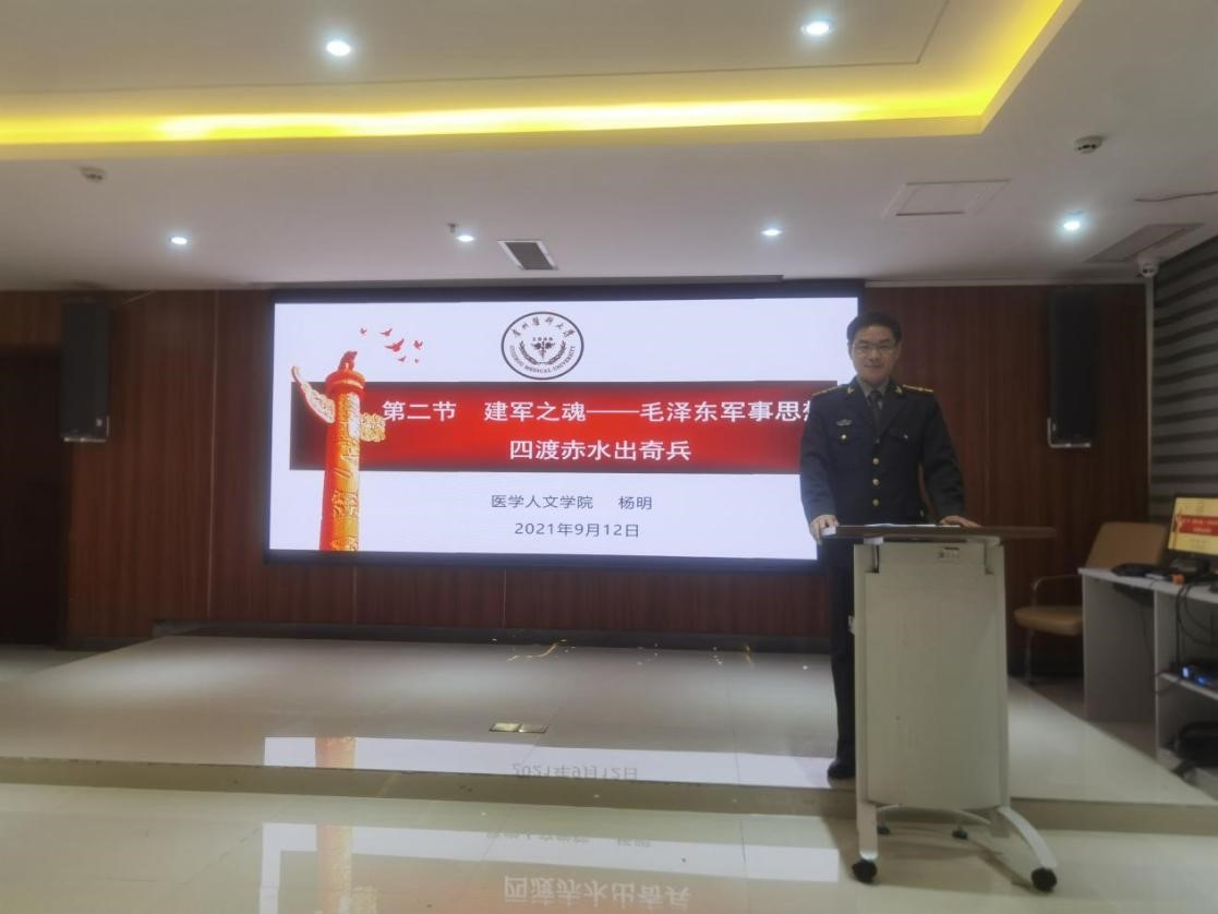 为进一步贯彻教育部、中央军委国防动员部印发的《普通高等学校军事课教学大纲》要求,提高我校军事理论课教学质量和讲课水平,2021年9月12日,军事理论教研室组织杨明和刘美伶两位教师为全体教研室教师做了一堂军事理论示范性授课。首先, 杨明示范授课专题为《毛泽东军事思想之四渡赤水出奇兵》,他从四渡赤水的背景、四…