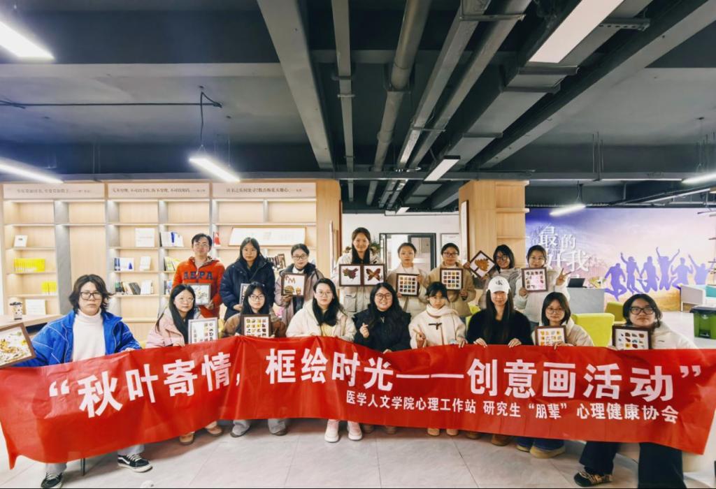 为丰富学生精神文化生活,帮助学生缓解学业压力,2025年12月8日至10日,成人影院 心理工作站联合研究生朋辈心理健康协会,在诚己学生社区开展“秋叶寄情·框绘时光”创意画活动,吸引了成人影院 、医药卫生管理学院、药学院的研究生及本科生参与其中。